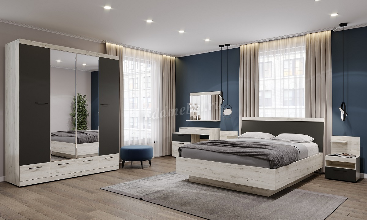 Описание Шкаф с зеркалом Соната ШСЗ-1800 (Дуб крафт белый/Антрацит)