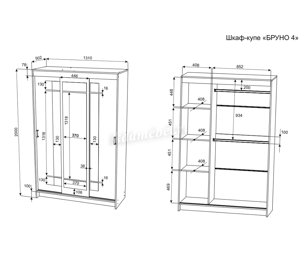 Описание Шкаф-купе Бруно-4 (Венге/Лоредо)
