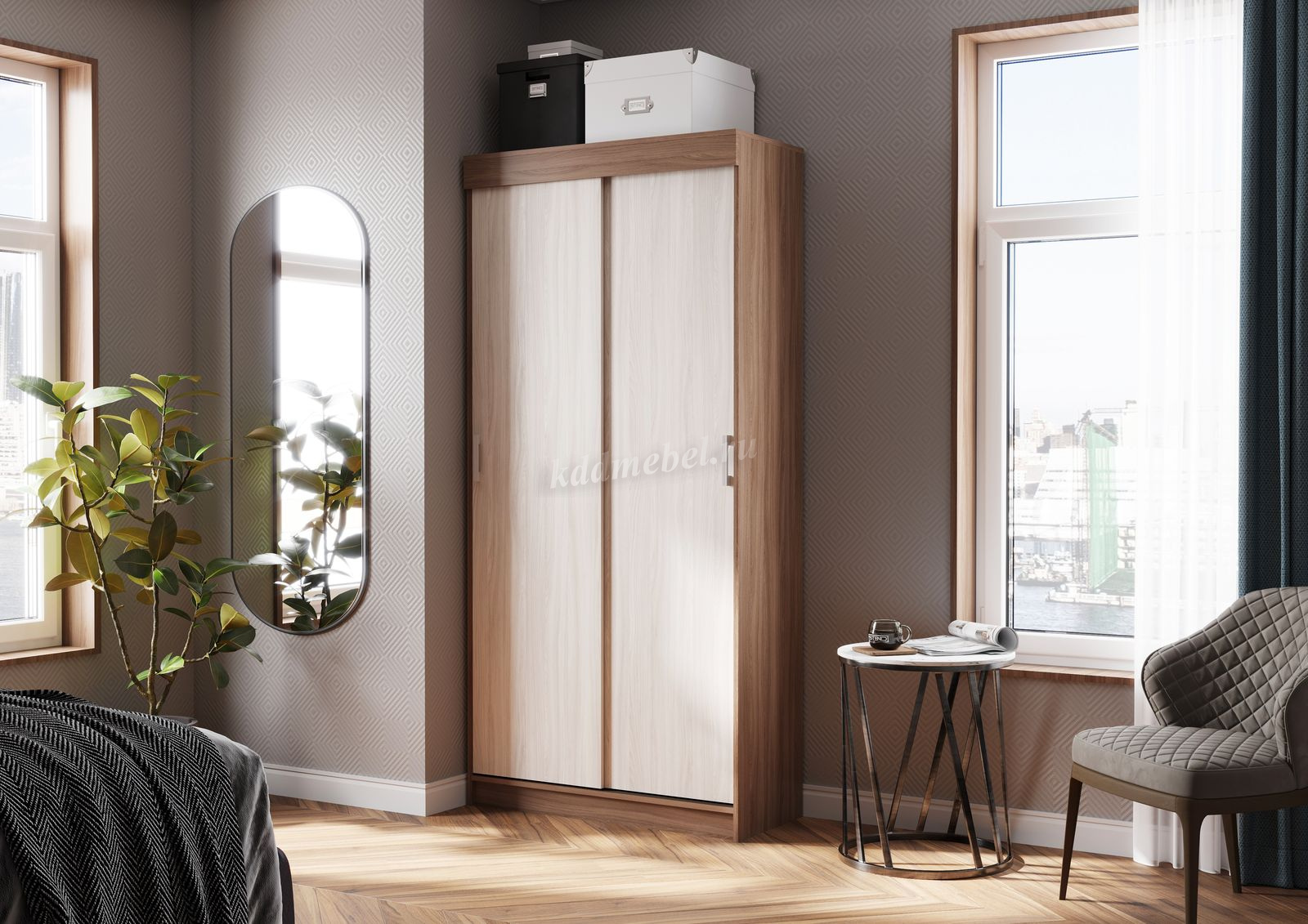 Описание Шкаф-купе Евро 1000 (Ясень шимо темный/Ясень шимо светлый)
