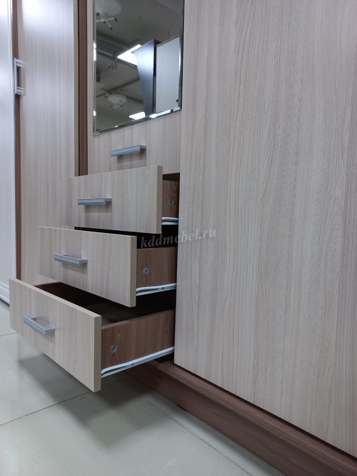 Шкаф-купе "Лидер-3"— идеальный помощник для оформления практичной, вместительной и функциональной зоны хранения в вашем доме. Изделие подойдёт для организации вместительной зоны хранения как в узком коридоре, так и в спальне. На двери имеется ростовое зеркало, такое решение визуально расширит пространство и наполнит его отраженным светом. Внутреннее наполнение шкафа представлено полками, выдвижными ящиками и двумя большими отделениями, оборудованными штангами для вешалок. Такая комплектация позволит Вам удобно разместить все необходимые вещи. Респектабельно будет смотреться, и органично впишется в любой интерьер и порадует продуманной практичностью.