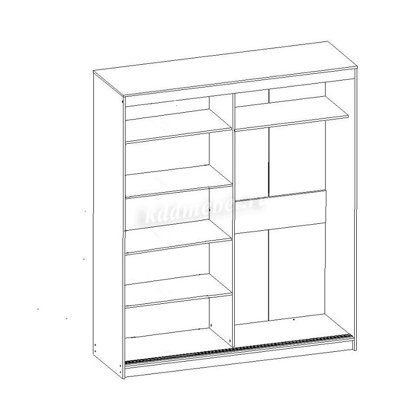 Многофункциональный шкаф-купе подойдет для гостиной, спальни или прихожей. Богатое внутреннее наполнение и стильное исполнение, делают модель незаменимой в любом доме, а раздвижные дверцы визуально увеличат Ваше пространство.