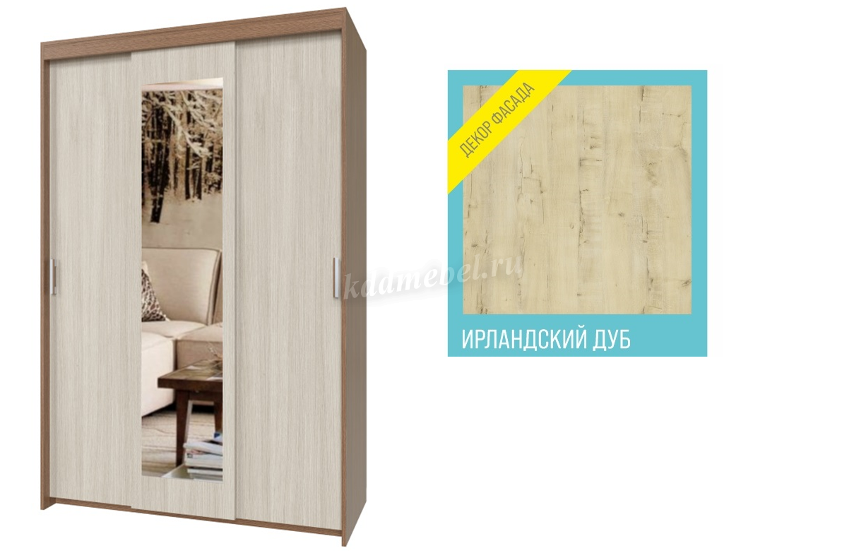 Шкаф-купе Томас Т-32 3-х дверный с зеркалом (Ирландский дуб) наличие товара: