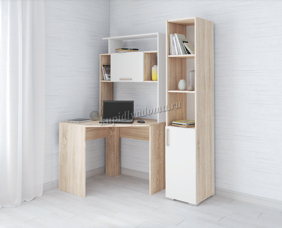 1)Стол компьютерный Квартет-2 (Дуб крафт золотой/Белый древесные поры)