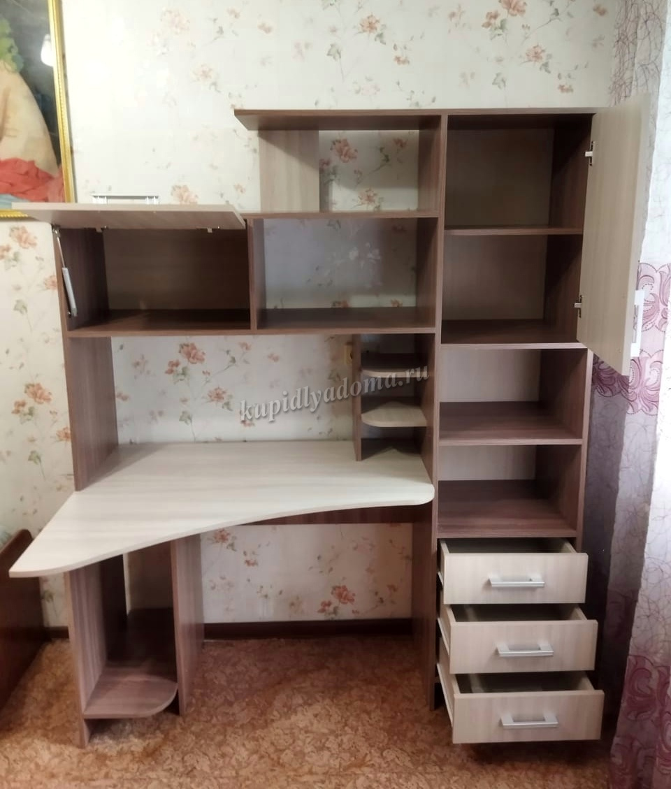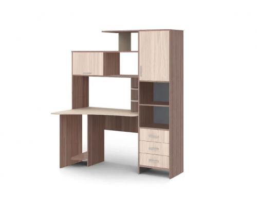 Этот компьютерный стол выглядит максимально эффектно. Конструкция не только эстетична, но и многофункциональна. Компьютерный стол станет ценным помощником в организации комфортабельного рабочего места дома или в офисе. Изделие выполнено в лаконичном стиле, за счет чего без труда будет гармонировать практически с любым дизайном интерьера. Система хранения модели состоит из открытых, закрытых полочек и трех вместительных ящиков. Такая комплектация является гарантией бережного и удобного хранения множества вещей, включая всю необходимую технику, а все нужные бумаги, книги и канцелярские принадлежности всегда будут под рукой.