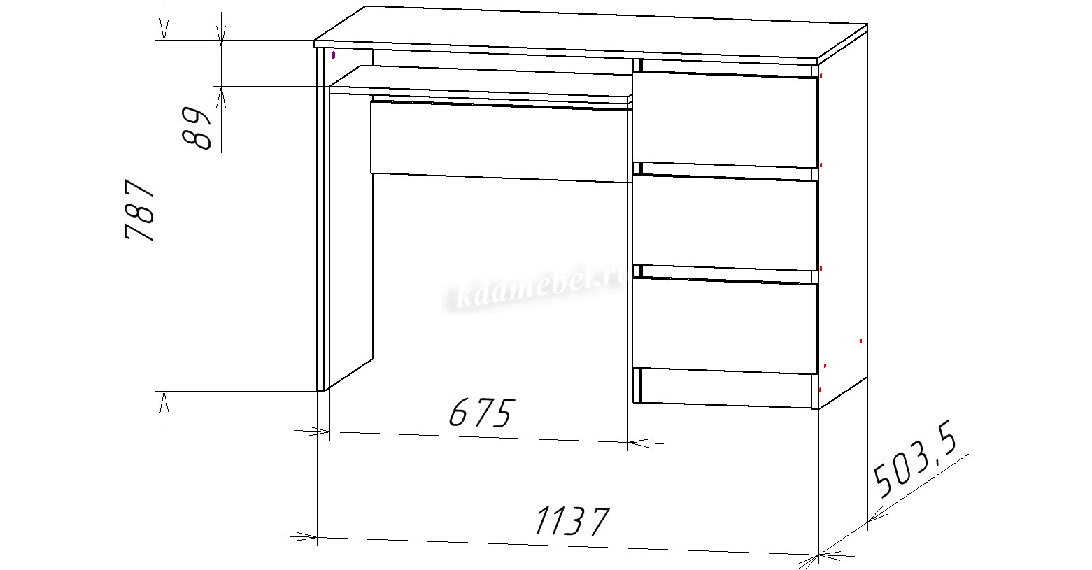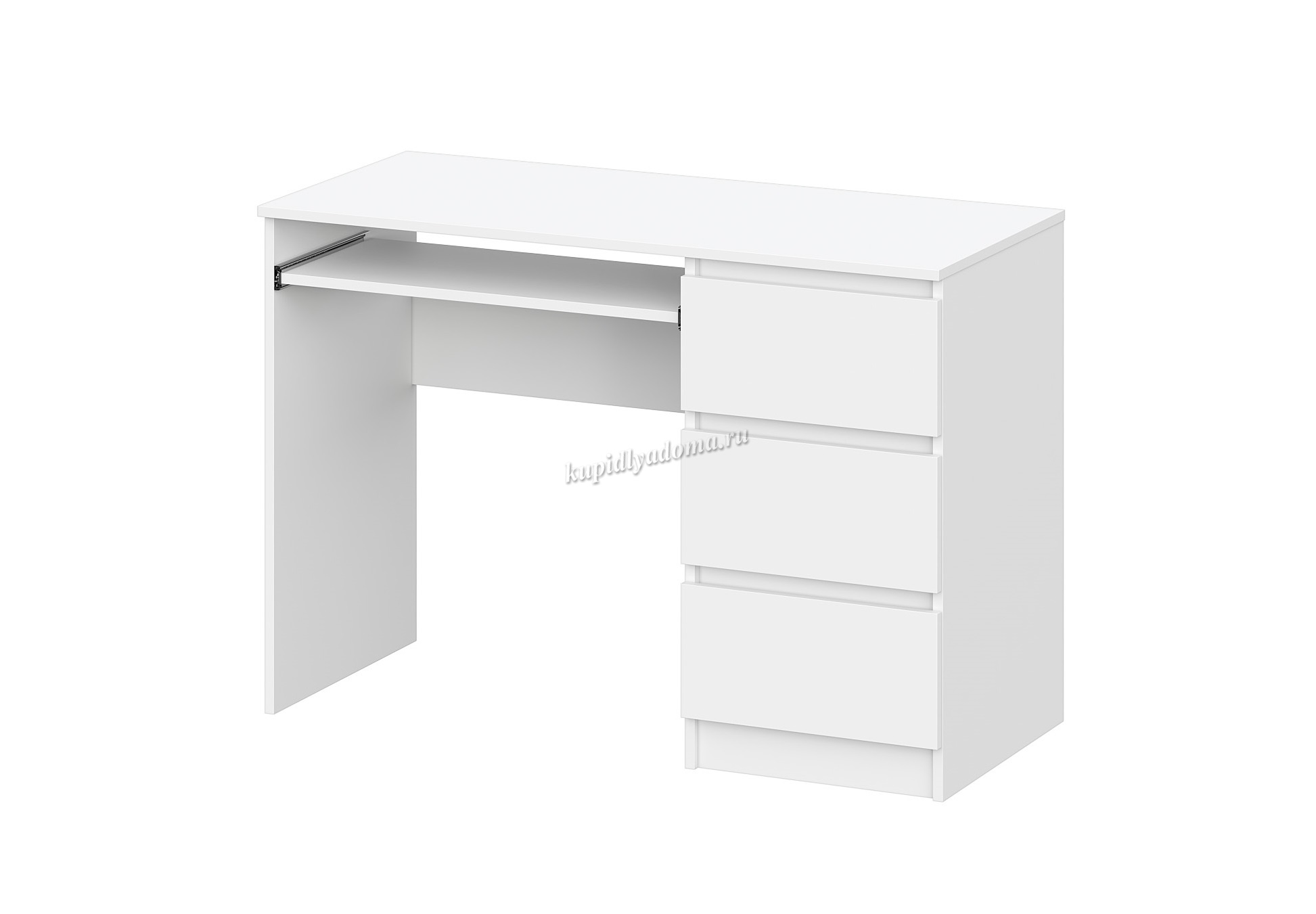 Стол компьютерный с тремя ящиками. Полка под клавиатуру. Ящики без ручек, выемка для открывания. Направляющие НПВ шариковые, на ящики и полку под клавиатуру