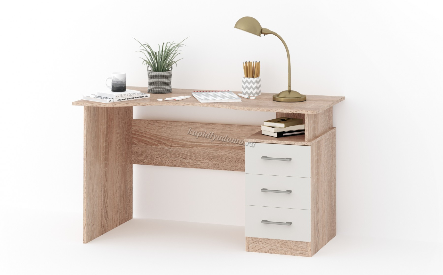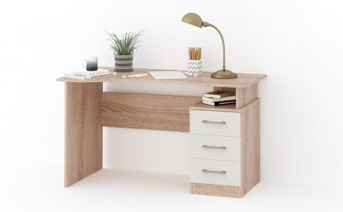 Стол письменный компьютерный – удобное рабочее место для студента, школьника, отличное решение для кабинета с интерьером в скандинавском стиле. На широкой столешнице легко поместится монитор, клавиатура и документы, а в ящиках поместятся все письменные принадлежности.