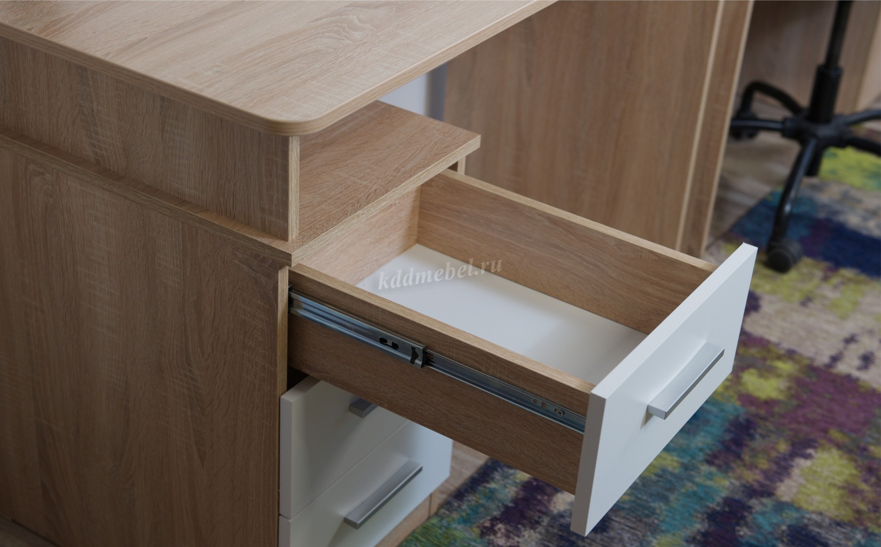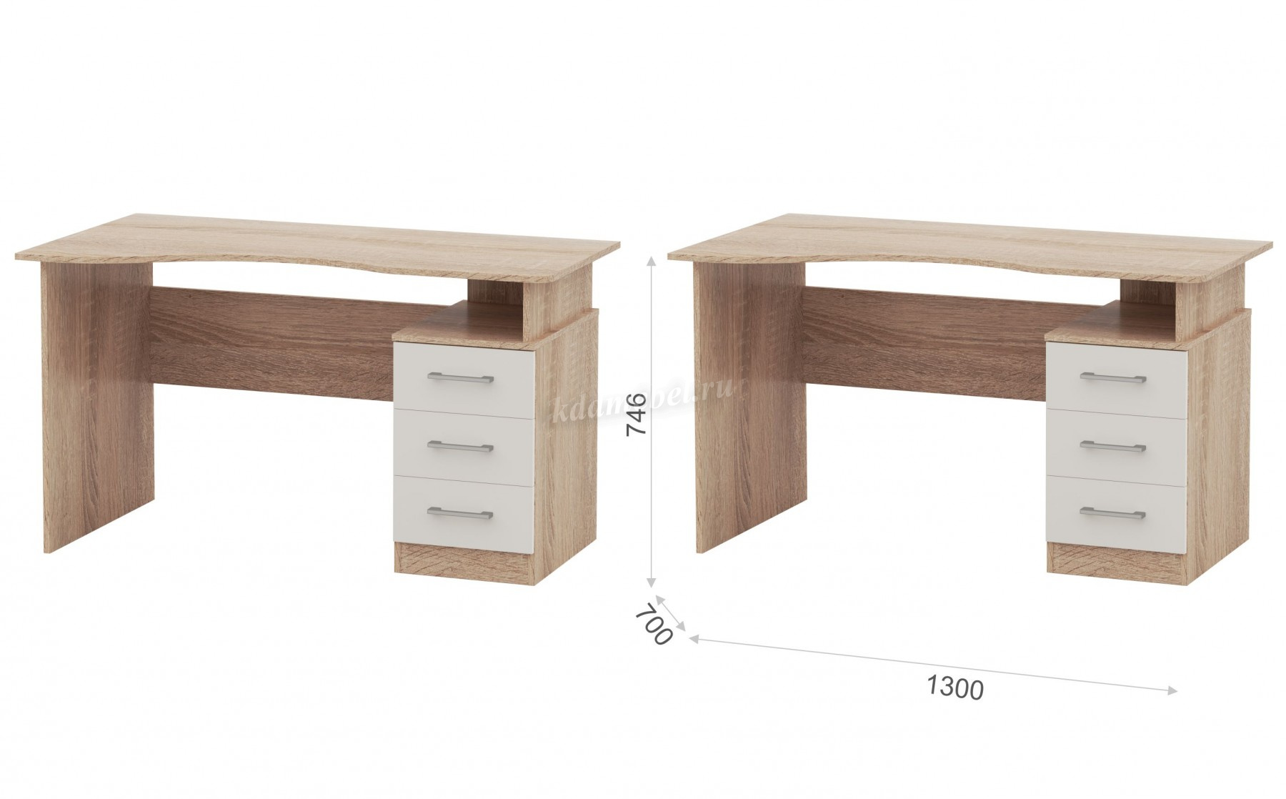 Описание Стол письменный эргономик Гарвард 130 3 ящика левый (Дуб сонома/Белый)