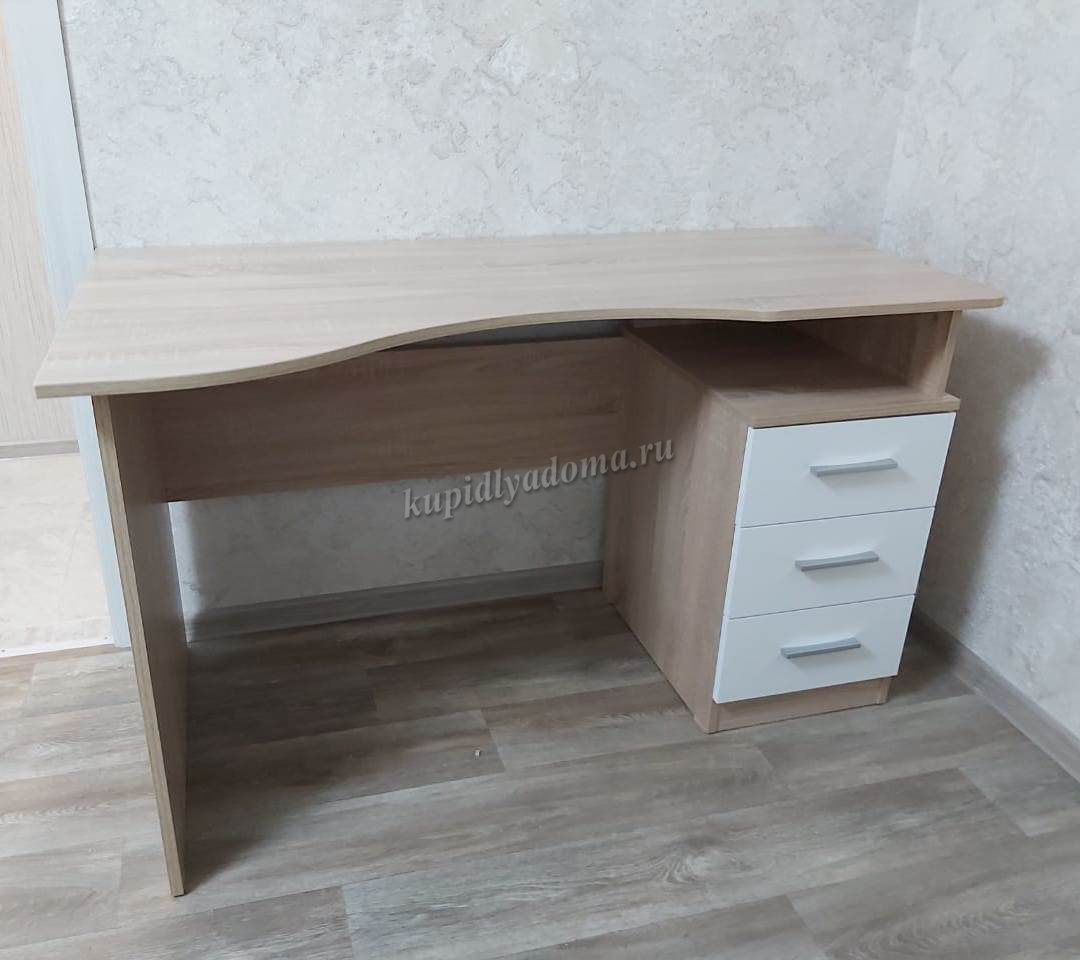 Стол письменный эргономик Гарвард 130 3 ящика левый (Дуб сонома/Белый) наличие товара: