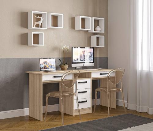 Стол-тандем письменный Лена СТН-2Я (Дуб сонома/Белый глянец)