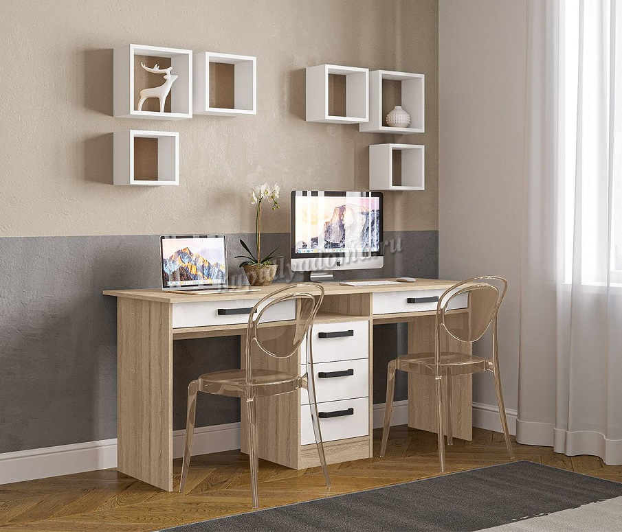 Стол-тандем письменный Лена СТН-2Я (Дуб сонома/Белый глянец) наличие товара: