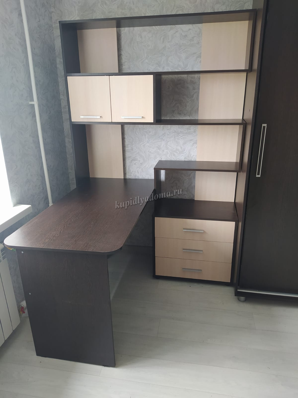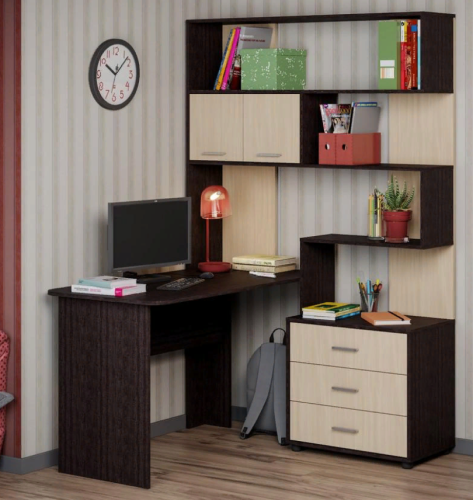 Уголок состоит из рабочего стола размером Д.1300 х В.750 х Г.640 мм. и расположенной под