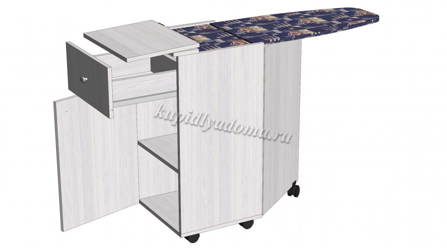 Стол с гладильной доской поможет сэкономить свободное пространство вашего дома, не пренебрегая практичностью. Модель достаточно компактна, что позволит разместить ее даже в небольшом помещении. Изделие выполняет функции практичной гладильной доски и удобной зоны хранения различных вещей. Классическое цветовое исполнение будет гармонировать со многими интерьерами.