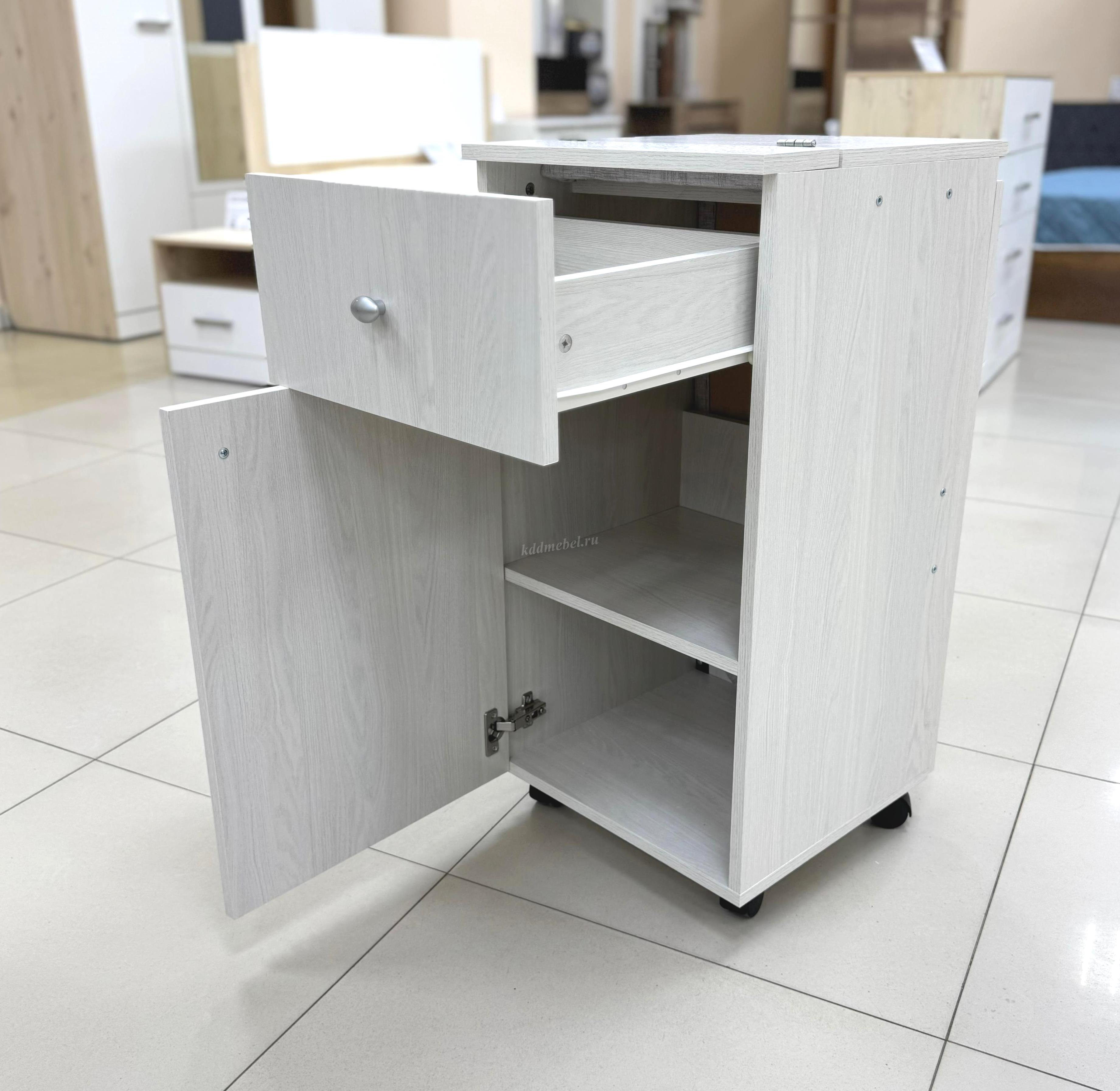 Удобная и многофункциональная стол-тумба с ящиками и откидным верхом.