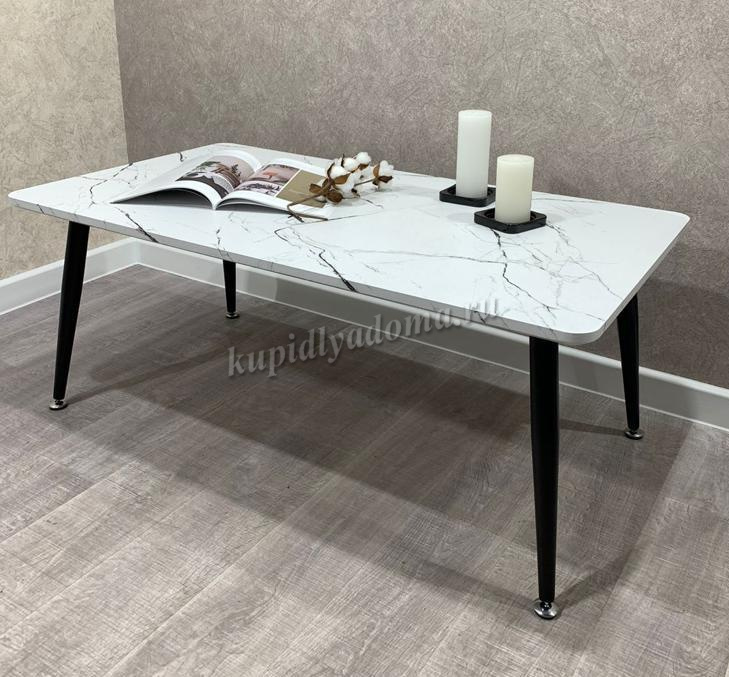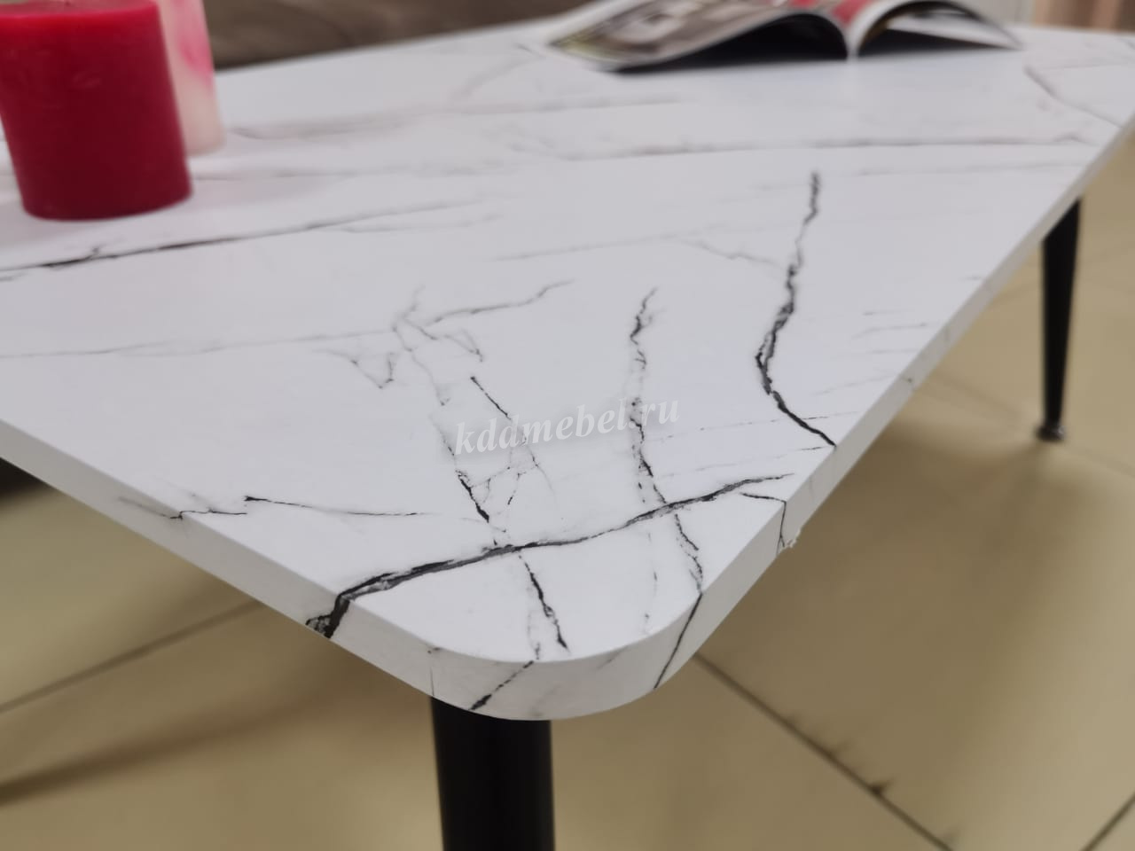 Стол журнальный Элегант (Черно-белый мрамор/Опоры белые)