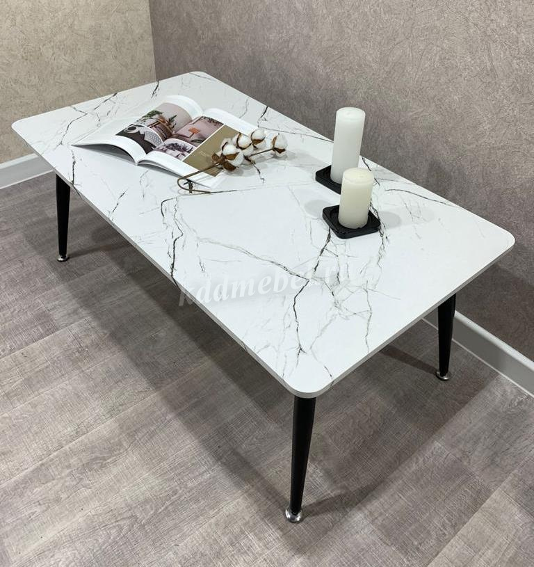• Стол журнальный Элегант (Черно-белый мрамор/Опоры белые)