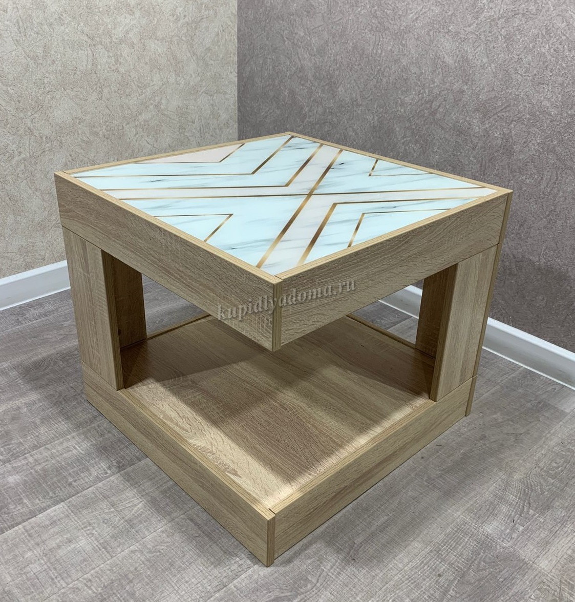 Стол журнальный Куб с фотопечатью (Дуб сонома светлый/2728) наличие товара: