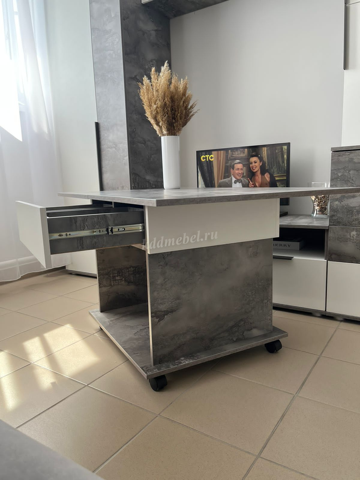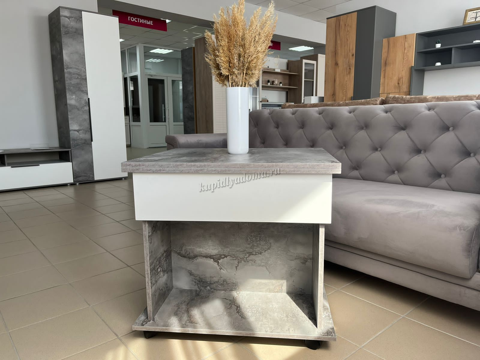 Стол журнальный Моника раскладной с ящиком (Айрон рок/Белый лофт) наличие товара: