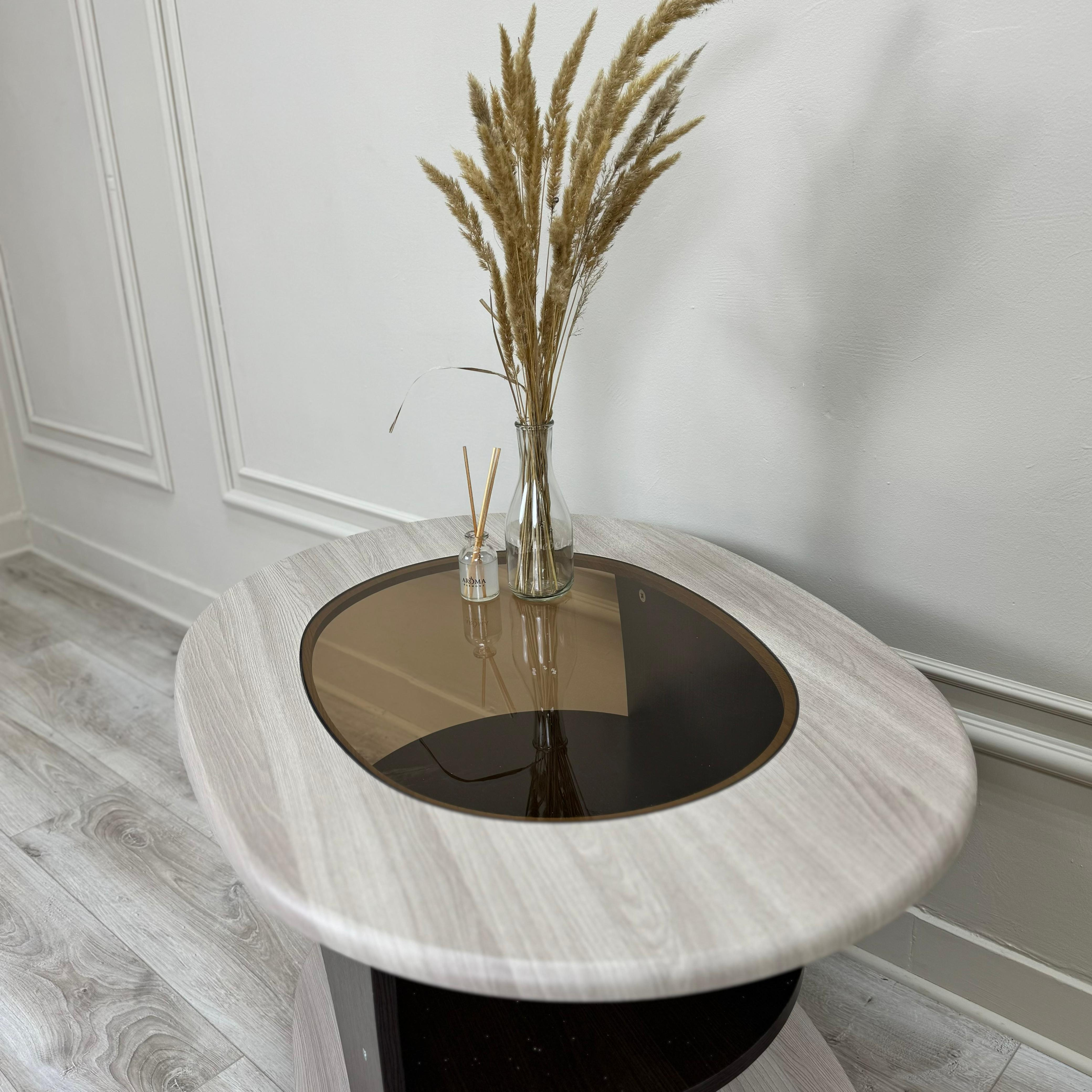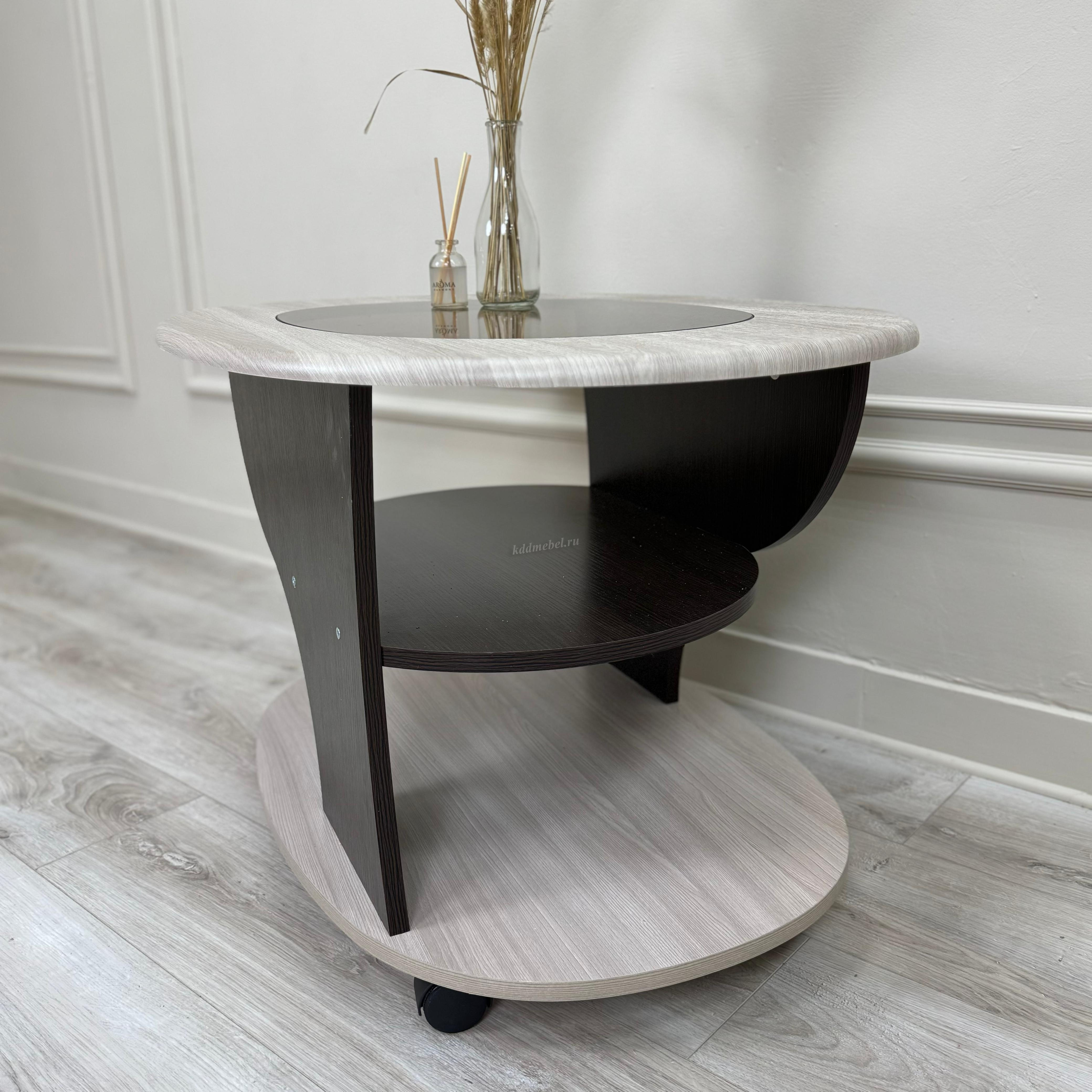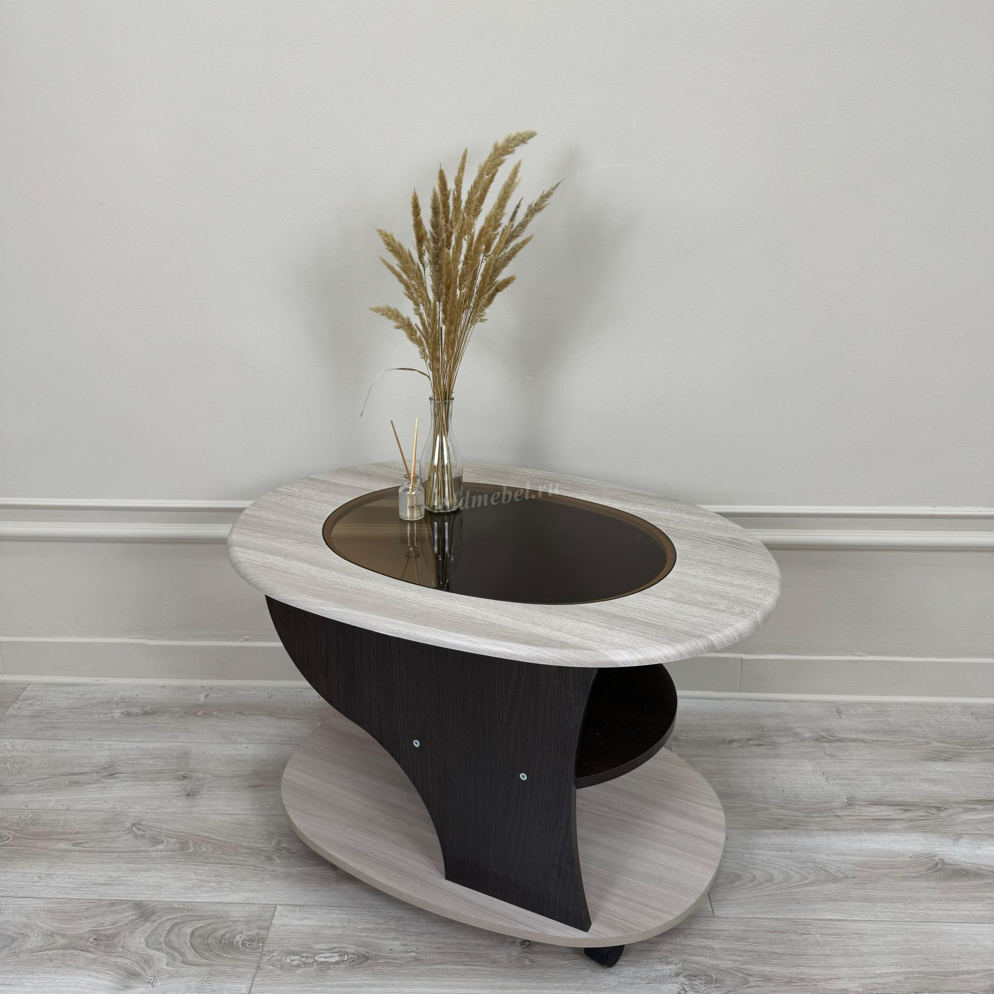 Стол журнальный СЖ 1-станет прекрасным украшением интерьера. Стол выполнен из материалов ЛДСП и МДФ, а его поверхность в форме овала - из стекла.