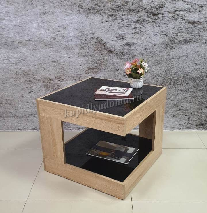 Стол журнальный СЖ-20 (Дуб сонома/Черное стекло) наличие товара:
